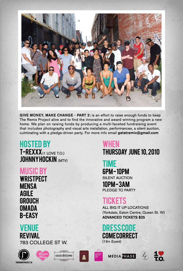 GIVE MONEY, MAKE CHANGE – PART 2 is an effort to raise enough funds to help keep The Remix Project alive and flourishing as well as