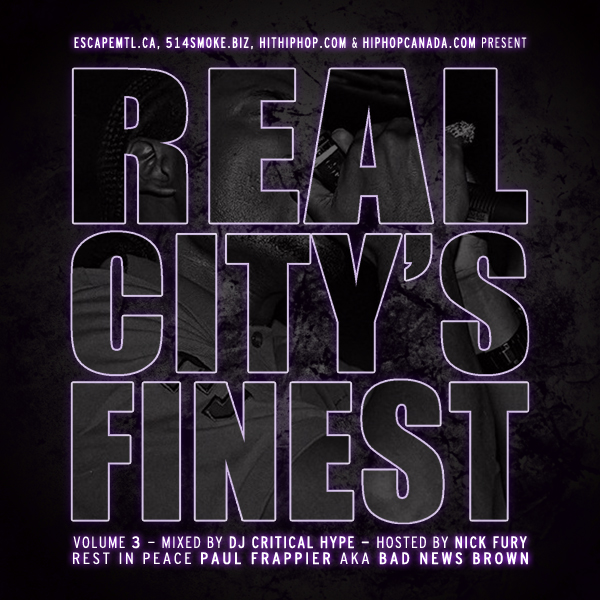 EscapeMTL.ca is proud to present, in partnership with 514Smoke.biz, HitHipHop.com & HipHopCanada.com the next installment of the Real City’s Finest compilation. Mixed by DJ Critical Hype & hosted by Nick Fury, this mixtape combines many of the different styles and sounds from Montreal’s homegrown talent. This mixtape features artists like Magnum, Milli Millz, I.Blast, Mugz, SRH, Krazy K, Guru Affiliated, Boy6lue, Borden, CA$HRULEZ, D-Shade, Underground Realroad, Rico Blox and many more.
