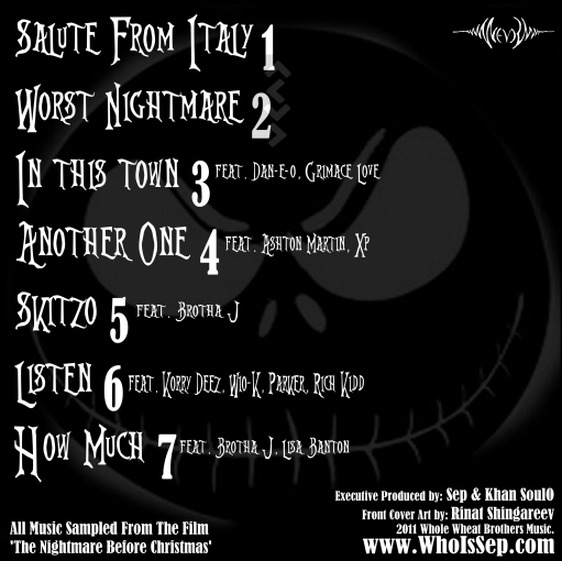 “The Nightmare Project” consists of beats all sampled from the movie “A Nightmare Before Christmas”.